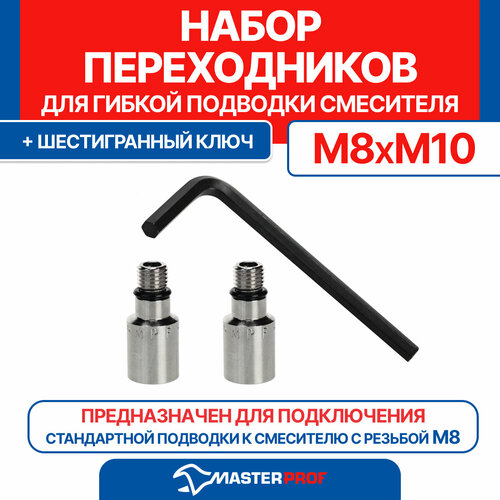 Набор переходников для гибкой подводки смесителя MPF М8-М10, 2 шт + шестигранный ключ ИС.101084
