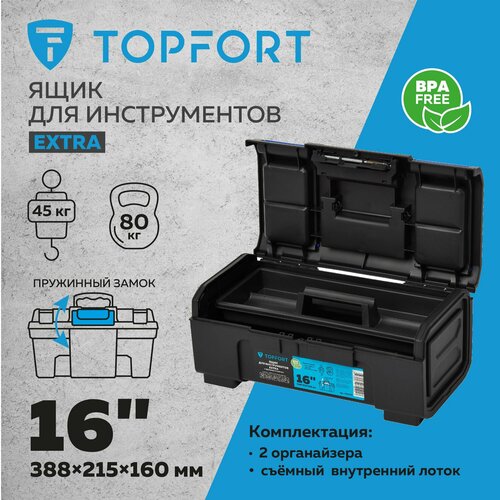 Ящик для переноски и хранения инструментов Topfort Extra, строительный органайзер с крышкой 388x215x160 мм