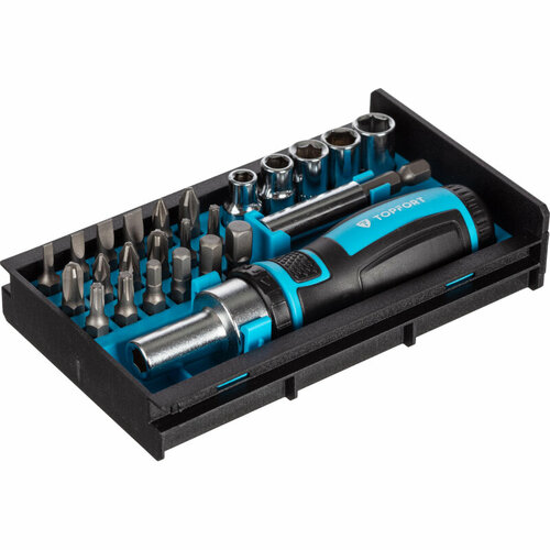 Отвертка реверсивная с набором бит Topfort 25 шт. для работы с крепежными изделиями резьбовых соединений, для закручивания и выкруч...