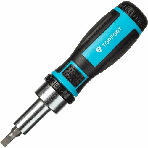 Отвертка реверсивная с набором бит Topfort 25 шт. для работы с крепежными изделиями резьбовых соединений, для закручивания и выкручивания винтов, болтов и других видов крепежного элемента. Особенности изделия:- Материал бит и торцевых головок - высокопрочная хромованадиевая сталь специальной закалки.- Эргономичная двухкомпонентная рукоятка с вставками из термопластичного каучука (TPR вставка) снижает нагрузку на кисть и способствует крепкому захвату инструмента.- Магнитный держатель обеспечивает быструю и надежную замену насадок.- Отвертка оснащена реверсивным храповым механизмом. В комплект входит 25 предметов:- Реверсивная отверточная рукоятка с храповым механизмом - 1шт.- Отверточная рукоятка - 1шт.- Магнитный держатель - 1 шт.- Магнитный держатель для точных работ - 1 шт.- Переходник, длина - 25 мм - 1 шт.- Металлические биты для точных работ - 20 шт. (4x28 мм): плоские (1.0 мм, 1.5 мм, 2.0 мм, 2.5 мм); крестообразные (P
