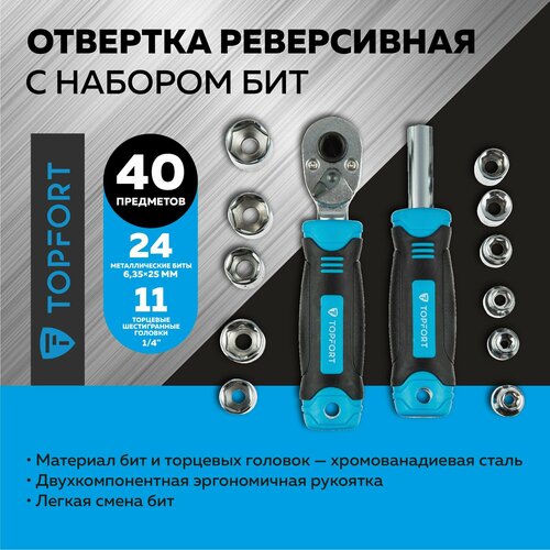 Отвертка реверсивная с набором бит Topfort, 40 предметов
