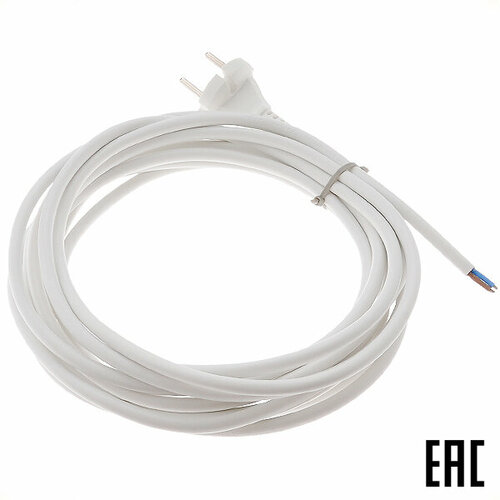 Шнур ПВС-ВП-2х0,75-5,0 армированный вилкой 5м белый Электрическая мануфактура