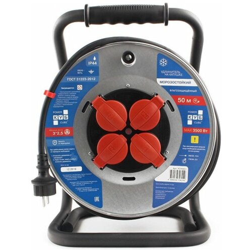 Морозостойкий силовой удлинитель Power Cube "Куб" PC-2F-R-20(IP), 2*1.5 мм, 3500Вт, 16А, 20м