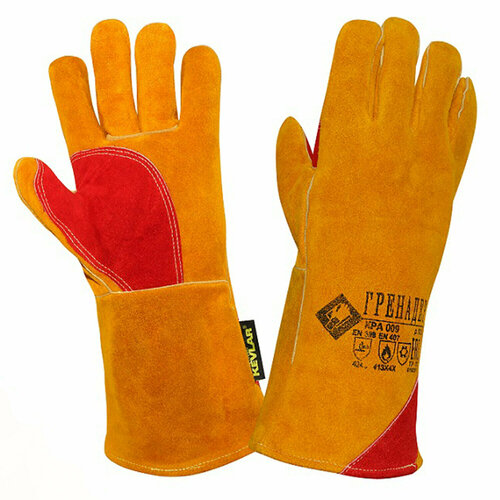 Краги сварщика спилковые гренадер, усиленные, утепленные, размер 10,5 (XL), пятипалые, желтые, КРА009 / Квант продажи 1 Ед.