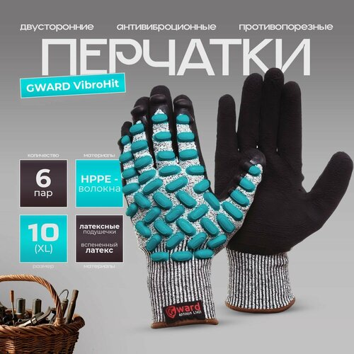 Перчатки рабочие защитные из HPPE-волокна с латексным покрытием Gward VibroHit - размер 10(XL), в упаковке 6 пар