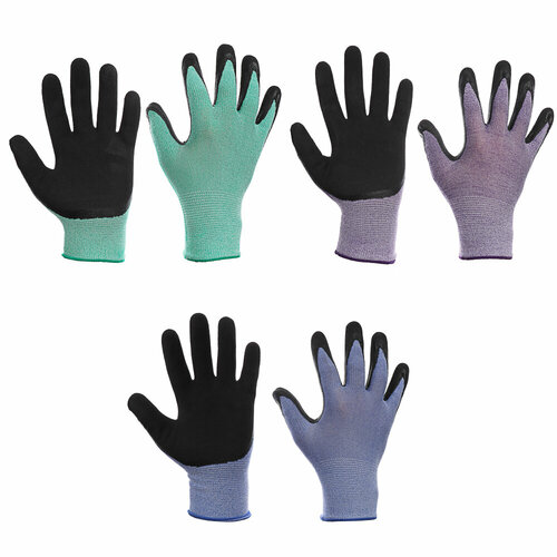 Перчатки садовые нейлоновые с нитриловым полуобливом, 10 размер, 23,5см, 30гр
