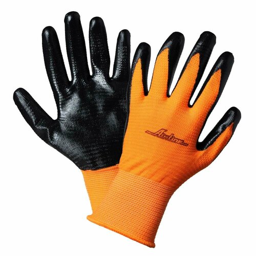 Перчатки нейлоновые с нитриловым покрытием ладони (L) сер./черн./оранж. ADWG102 AIRLINE, размер 9, L
