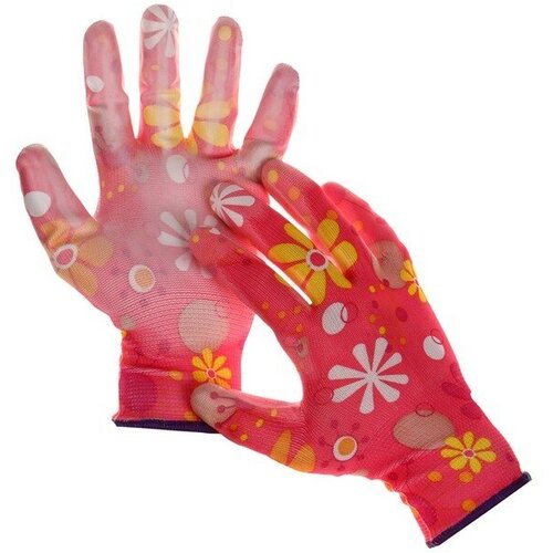 Перчатки нейлоновые, ПВХ точка, размер 8, микс, "Цветы" 1761680
