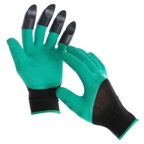 Перчатки нейлоновые садовые "Землеройки" для левшей, с латексной пропиткой, с когтями, зеленые