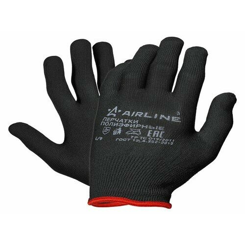 Перчатки полиэфирные черные (L) , AIRLINE ADWG007 (10 шт.) черный