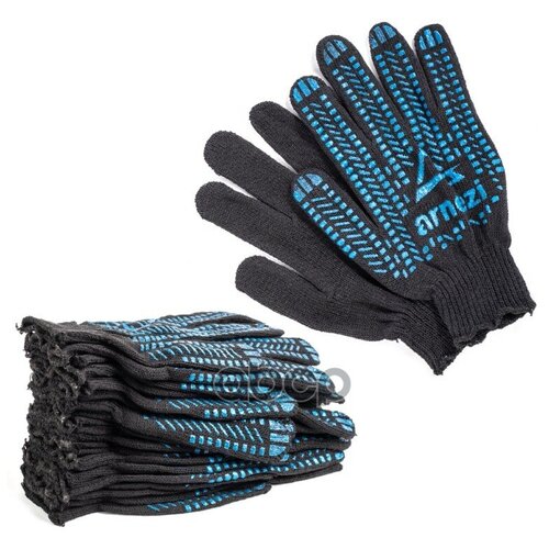 Перчатки рабочие хлопчатобумажные вязка 10 класс с точечным покрытием из ПВХ черные, ARNEZI R8000202 (10 шт.)