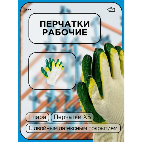 Перчатки рабочие х/б с двойным латексным обливом, комплект 10 пар