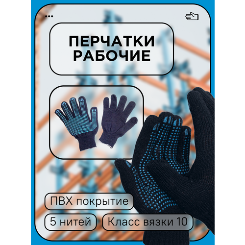 Перчатки рабочие х/б с ПВХ 5-нитка "Точка" 10 кл. Черные, комплект 30 пар