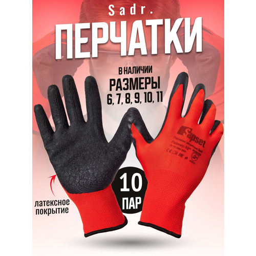 Перчатки рабочие садовые Sapset Sadr с покрытием из рельефного латекса, размер XL/10 - 10 пар