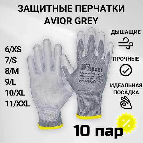 Перчатки рабочие Sapset Avior Grey с покрытием из полиуретана, размер XXL/11 - 10 пар