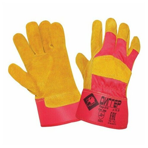 Перчатки спилковые комбинированные диггер, размер 10,5 (XL), желтые/красные, ПЕР610