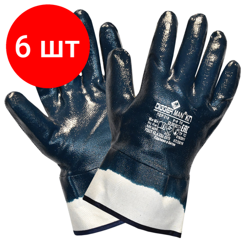 Комплект 6 шт, Перчатки хлопковые DIGGERMAN КП, нитриловое покрытие (облив), размер 10 (XL), синие, ПЕР318