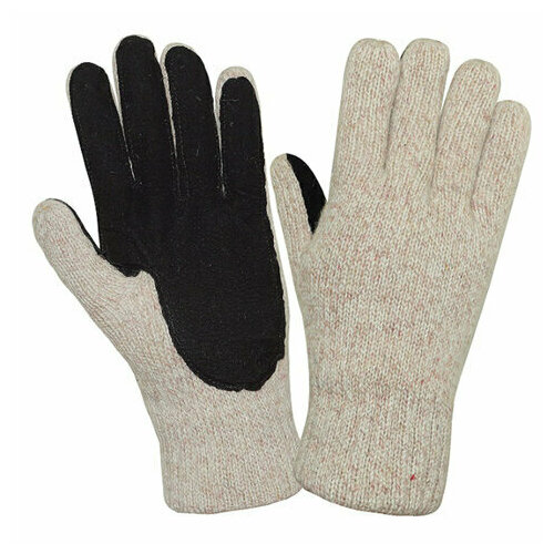 Перчатки шерстяные айсер утепленные со спилковыми накладками р-р 11 (XXL) бежевые/черные, 1 шт