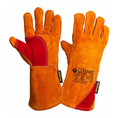 Краги сварщика спилковые гренадер, усиленные, нить Кевлар, р-р 10.5 (XL), пятипалые, желтые