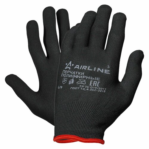 Перчатки полиэфирные черные (L) , AIRLINE ADWG007 (10 шт.)