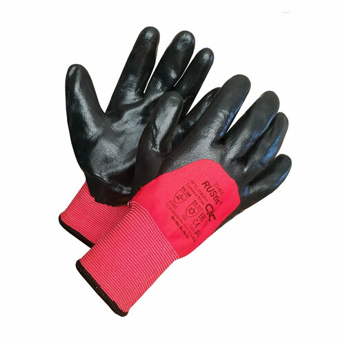 9Перчатки полиэфирные оилрезист маслобензостойкие 1 пара, 15 класс, 42-44 г, размер 9, покрытие - облив нитриловое, прочные, тактильные, СВС, nl13nt крас/чер.