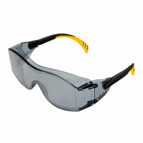 Очки защитные открытые Denzel поликарбонатные, увеличенная дымчатая линза, регулируемые дужки 89203