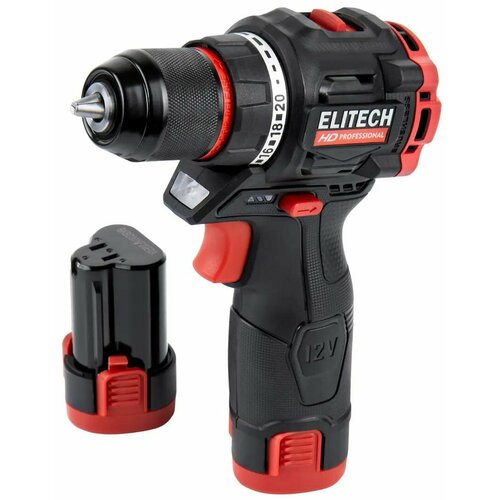 Дрель-шуруповерт аккумуляторная бесщеточная Elitech HD CD12L2, 12 В Li-ion 2x2 Ач