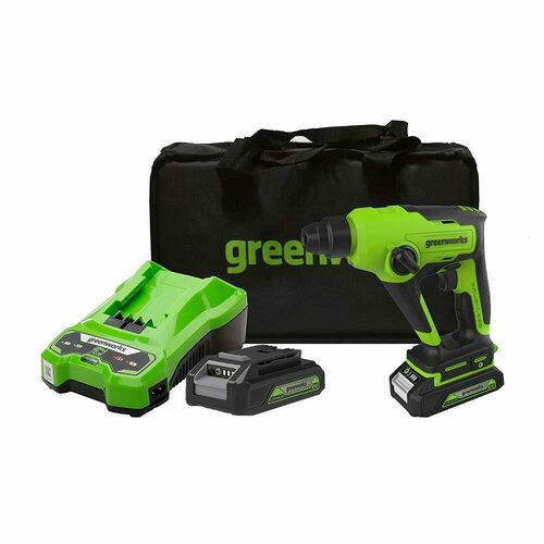 Перфоратор аккумуляторный Greenworks GD24SDS2K4 (3803007UB) 2 Дж 24В 1х4Ач Li-Ion SDS-plus с АКБ и ЗУ
