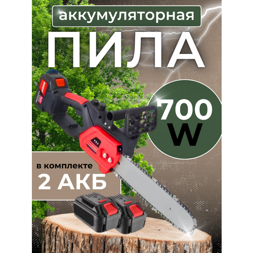 Пила аккумуляторная цепная хищник 12 дюймов, 2 АКБ, кейс (мини пила, бесщеточная, электропила, садовая) красная
