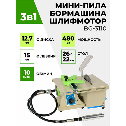 Мини-пила/бормашина/шлифмотор BG-3110 10000 об/мин 480 Вт/Электрическая настольная циркулярная мини-пила/Станок распиловочный
