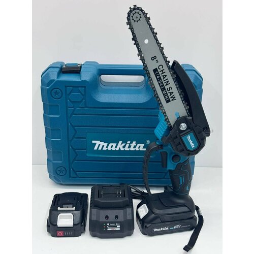 Пила аккумуляторная цепная "Хищник", 12 дюймов, 2 АКБ, кейс (мини пила, бесщеточная, электропила, садовая) синяя