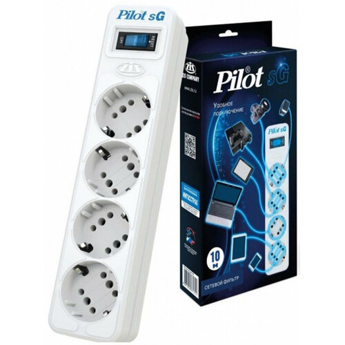 Сетевой фильтр ZIS Surge (Pilot SG 10M) protector Pilot SG 4 outlets (GP), 10A / 2.2kVt, automatic circuit-breaker, 10 m