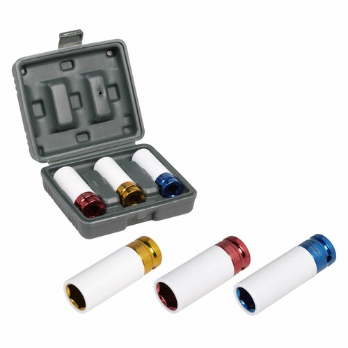Набор головок ударных для колёсных дисков 1/2" DR шестигранных удлинённых, 3 предмета (17, 19, 21 мм), Airline ATIS1241