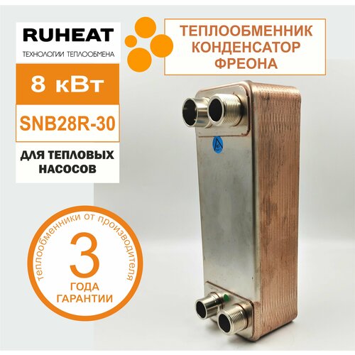 Паяный Теплообменник SNB28R-30 конденсатор фреона для теплового насоса, мощность 8 кВт.