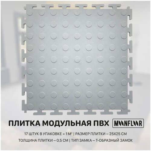 Плитка ПВХ модульная 250*250*5мм серая - 1 кв. м. - 17 шт. - рисунок "монета" - покрытие пола для гаража, сто, склада, тренажерного зала