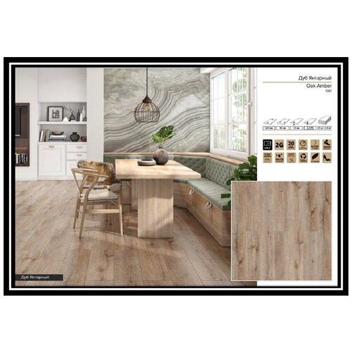 Плитка напольная виниловая Noventis Avalon Дуб Янтарный 1587 (180x1200; 3,5 мм; 0,3 мм; микрофаска) (10 шт./2,16 м2)