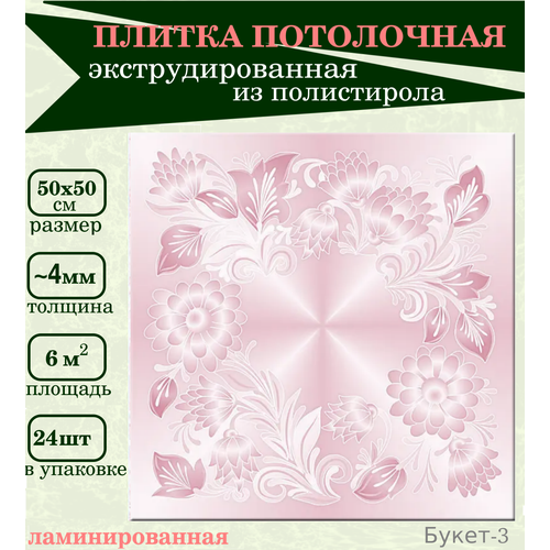 Плитка потолочная из полистирола экструдированная цветная Букет 1