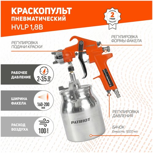 Краскопульт пневматический PATRIOT HVLP 1,8B
