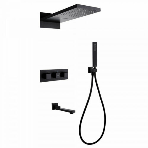 Душевая система ABBER Daheim AF8253B скрытого монтажа с изливом, термостат, черный матовый