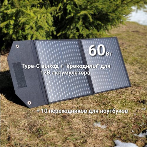 Солнечная батарея 60 Вт, TypeC портативная складная панель + зарядка 12В автомобильного аккумулятора, ноутбуков походная дачу RS300 500