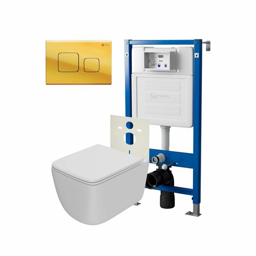 Комплект инсталляция с унитазом Point Элемент с сиденьем микролифт, механическая клавиша Афина, золото, PN48242G