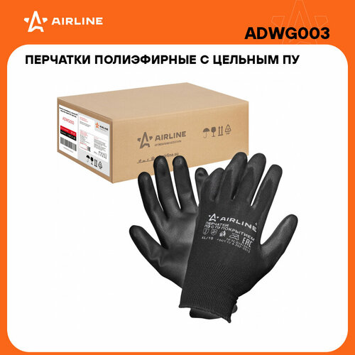 Перчатки полиэфирные с цельным ПУ черн. сер. (XL) , AIRLINE ADWG003 (1 шт.)