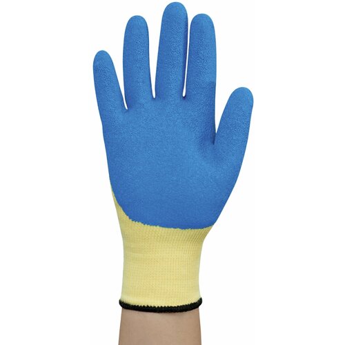 Упаковка 5 шт. Перчатки полиэфирные рубистронг супер прочные, 1 пара, 13 класс, 85-90 г, размер 9, покрытие - облив латексное, высокоизносостойкие, СВС, pl52wl беж/син