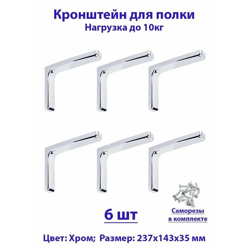 Кронштейн для полок 237мм, полкодержатель, консоль, для стола, комплект - 6шт