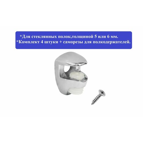 Полкодержатель для стеклянных полок толщиной 5-6 мм, под саморез, хром (4шт)
