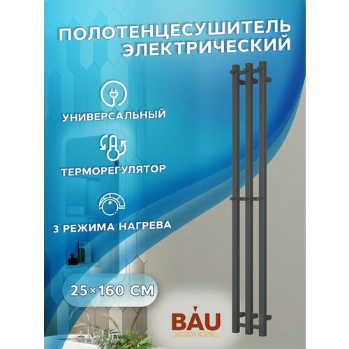 Полотенцесушитель дизайнерский электрический, BAU Stella 25х160, 3 коллектора, 2 крючка, матовый RAL 9005 черный