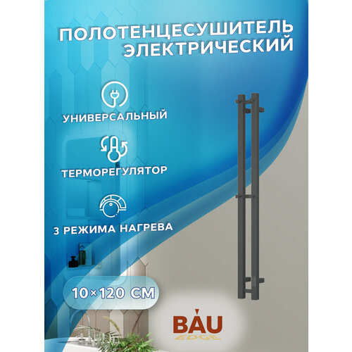 Полотенцесушитель электрический BAU Stil 50х100, 10 планок, универсальный, черный матовый RAL 9005