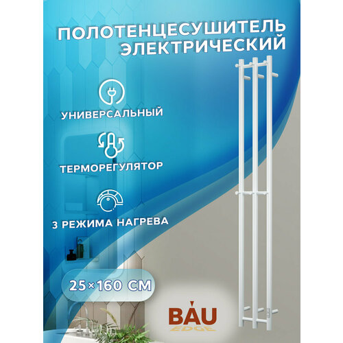 Полотенцесушитель дизайнерский электрический, профильный BAU Stella Square 25х160, 3 коллектора, 2 крючка, белый полуматовый
