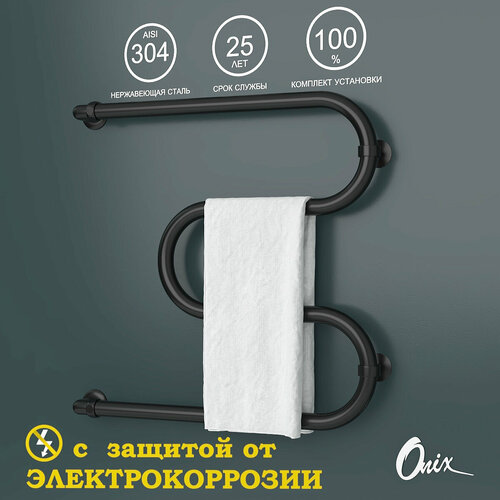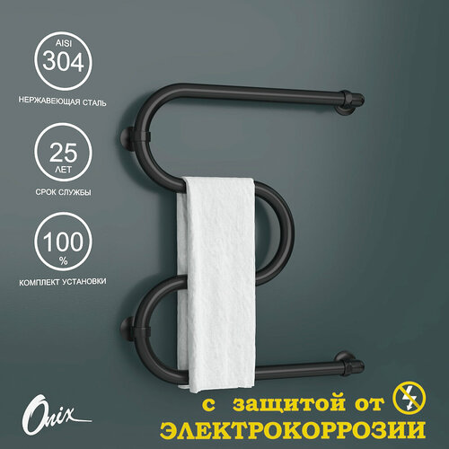 Полотенцесушитель Водяной Onix, модель Best Turn Black Left 500x500, П-образный, Черный матовый, полный комплект, с защитой от электрокоррозии