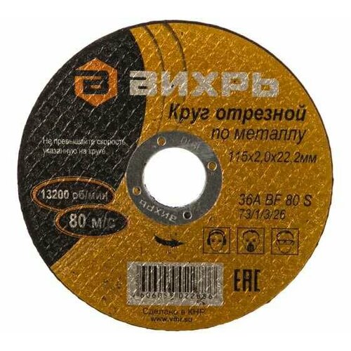 Круг отрезной по металлу (115х22х2 мм) Вихрь 73/1/3/26